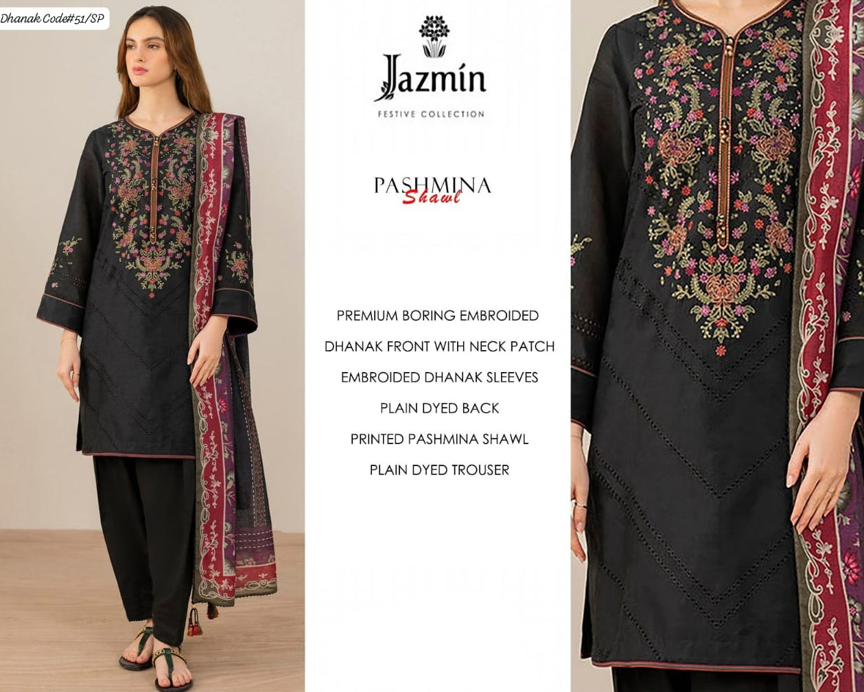 JAZMIN | DHANAK 3 PIECE EMBROIDED UNSTITCHED WINTER SUIT